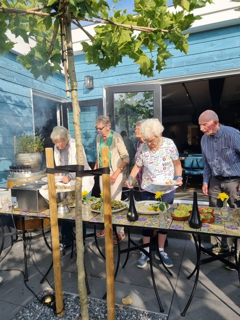 Dit jaar begonnen we na de zomerstop met een fantastische barbecue bij Spijslokaal de Scheve Schaats, geheel gesponsord door het mr. Roelsefonds. Op deze prachtige locatie aan het water, met een heerlijk zonnetje erbij, genoten de gasten van een zalig buffet/bbq en het buiten eten met elkaar. Ze vonden het bijzonder leuk om op een andere locatie te zijn. Zo waren ze echt een avondje uit buiten het dorp.
