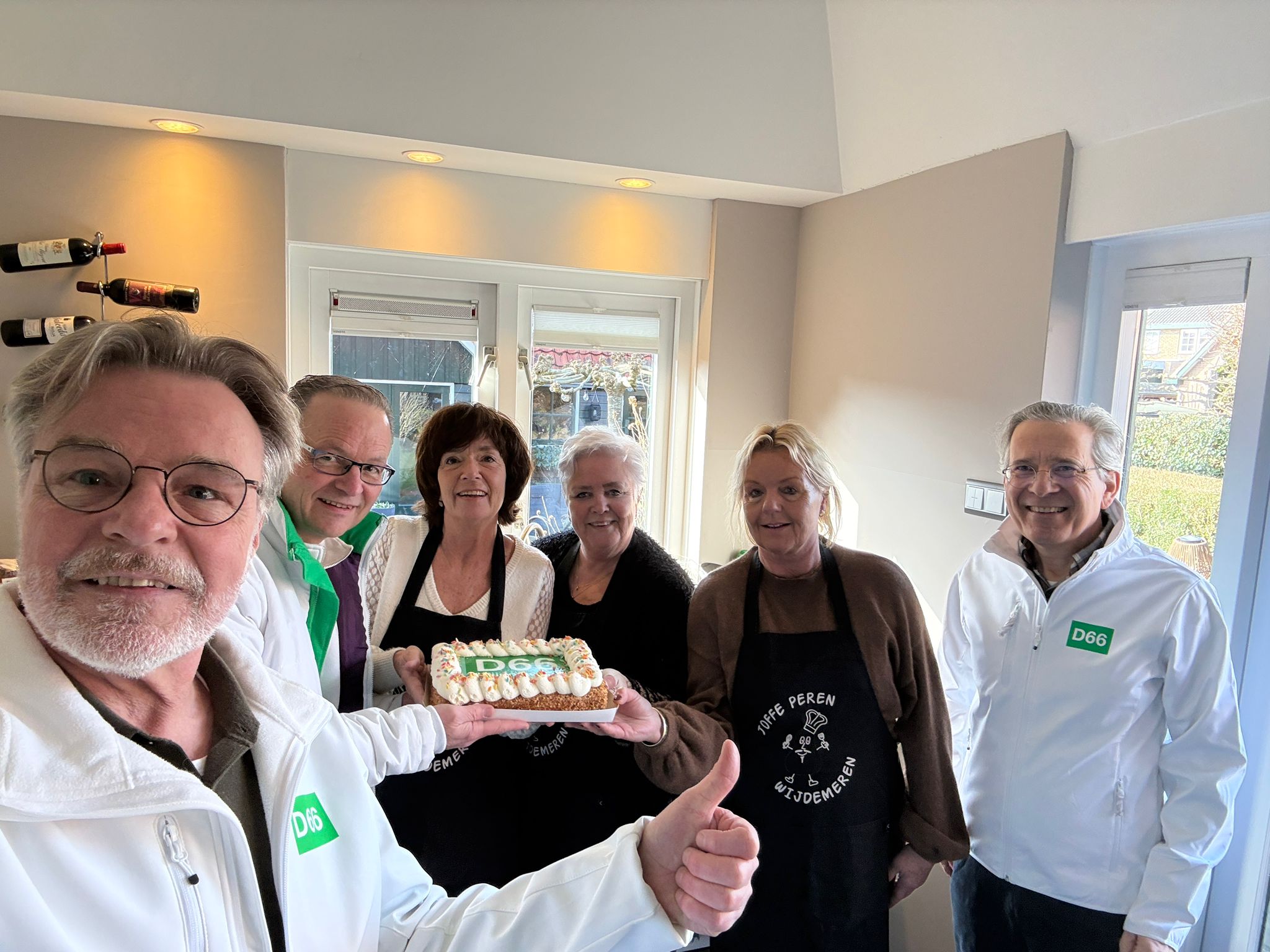 D66 Wijdemeren reikt jaarlijks een “Valentijnstaart” uit aan lokale vrijwilligers, organisaties of initiatieven, om hun inzet te waarderen. Vandaag, 14 februari 2026, bezorgde D66 de Valentijnstaart bij Jitske van Leeuwen, Marleen Marinus en José van Overeem van Toffe Peren Wijdemeren.