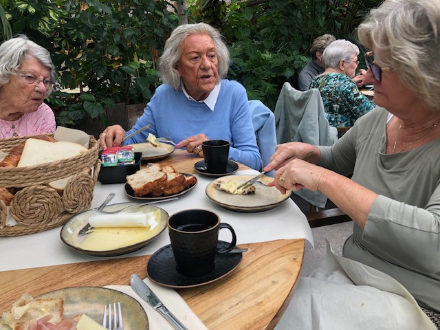 Vol vrolijke verhalen en dankbaarheid reed de bus weer terug naar Kortenhoef waar de chauffeurs van de Toffe Peren klaar stonden om velen naar huis te brengen. Voor iedereen daarna de benen omhoog want er was heel veel gelopen met rollators en rolstoelen om al het moois te zien.