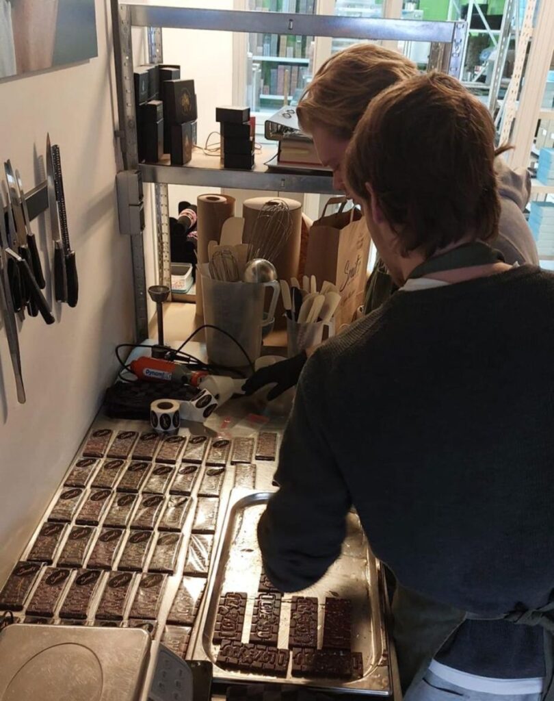 Ze zochten contact met Smit’s Delicious in Nederhorst den Berg dat op ambachtelijke wijze de lekkerste chocolade maakt in allerlei vormen, smaken en kleuren. Ook Smit’s was direct te porren voor het plan van de 3 studenten en stelde hulp en werkruimte beschikbaar. De ouders van de jongens sponsorden de grondstoffen en het project kon van start.
